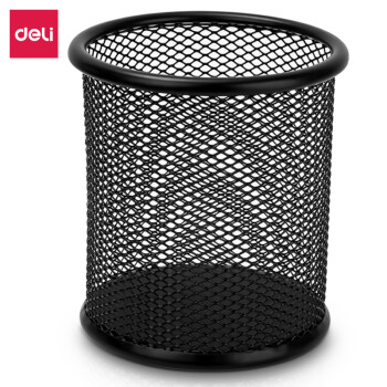 得力(deli)金属网纹圆形笔筒简约创意桌面收纳盒办公用品黑